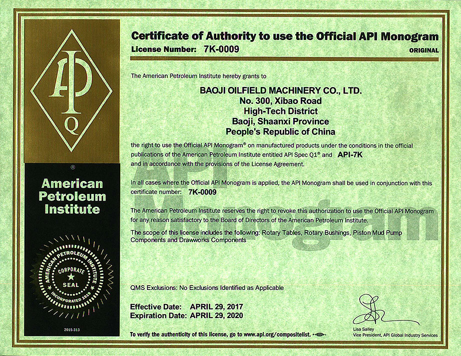 API 7K-0009 2017