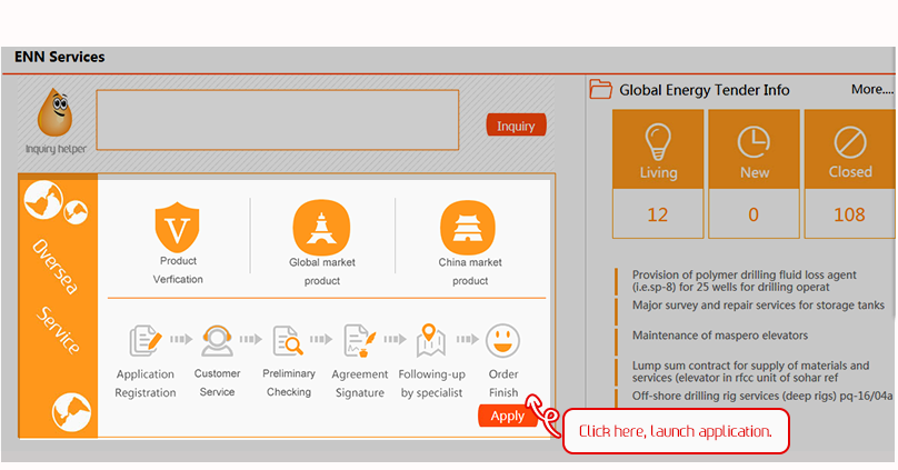 After login, the certified enterprise can launch oversea service application at Home-> ENN Service.